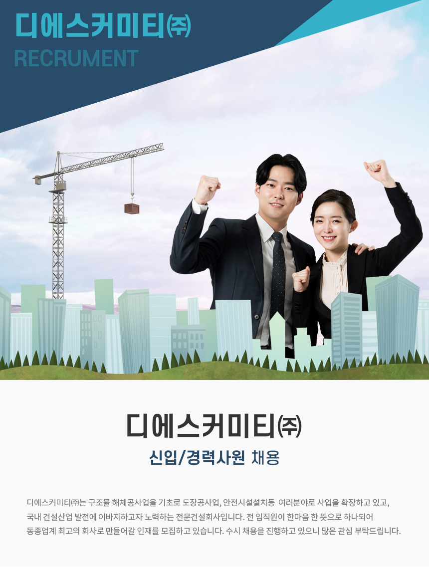 - 디에스커미티㈜에서는 유능한 인재를 수시 채용하고 있습니다. 근무조건
